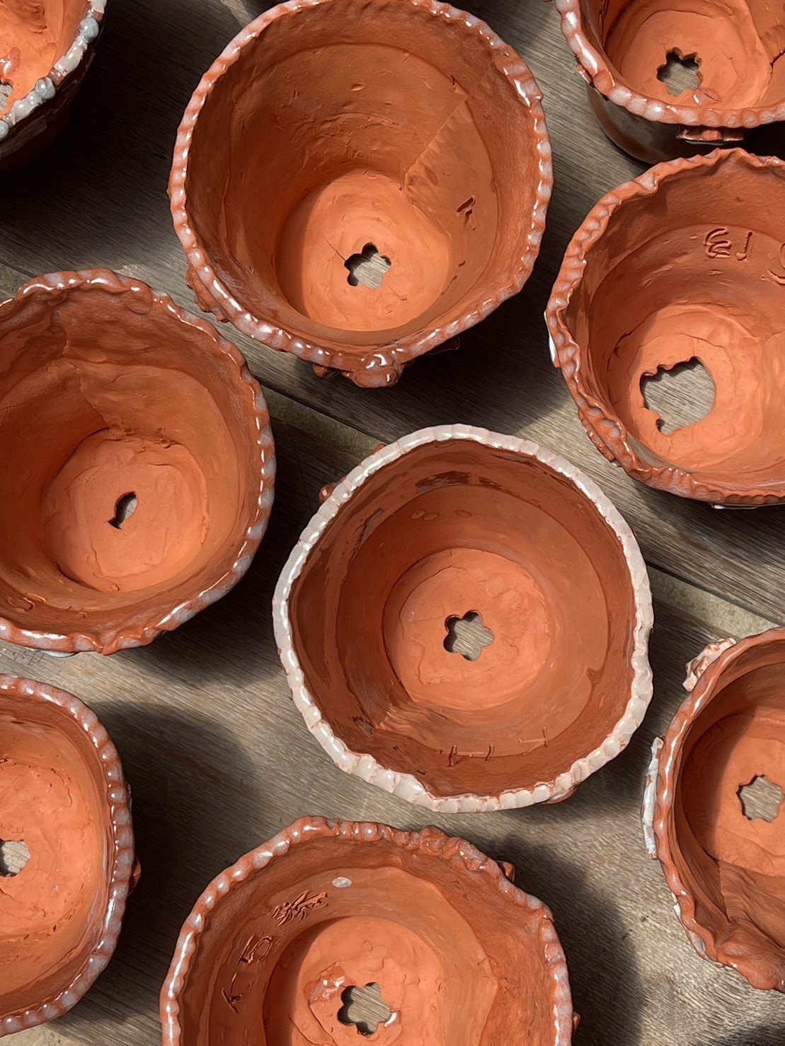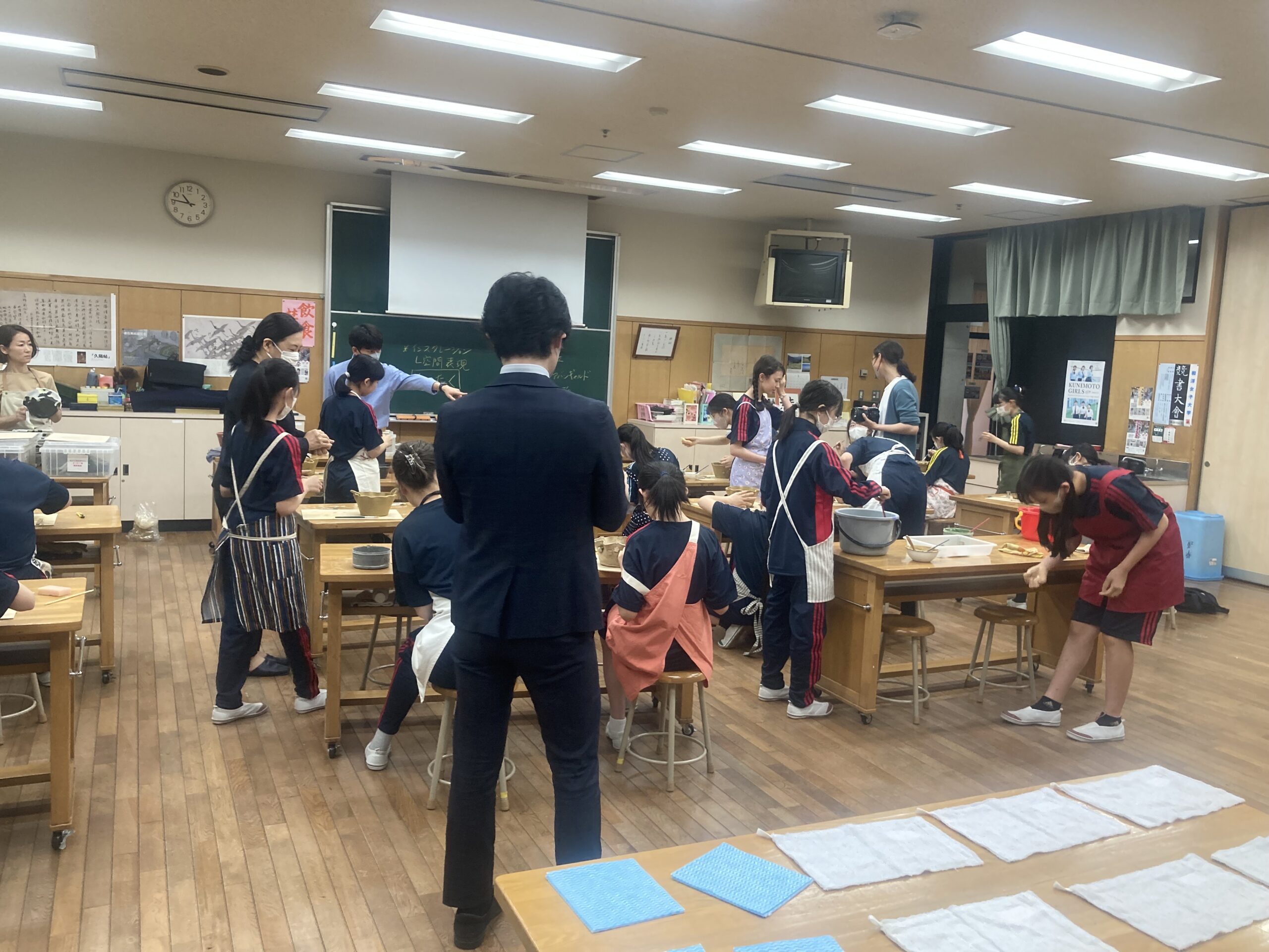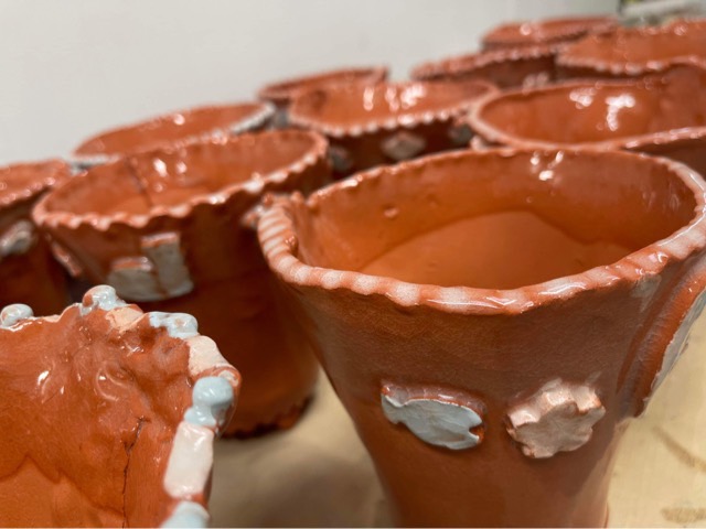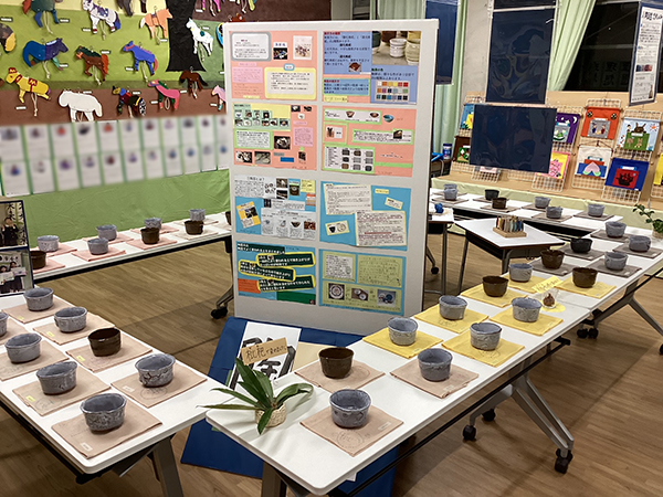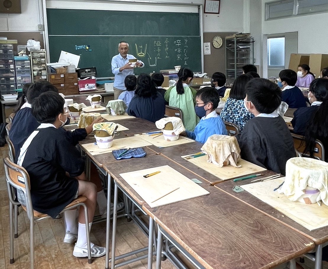 2クラス52名。マグカップと皿の制作です。作品は学園祭で展示されました。